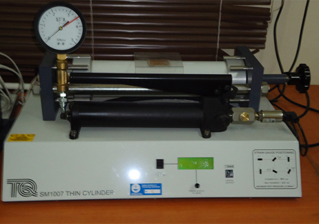 Thick cylinder shows the strains in the walls of a thick-walled cylinder when it is under stress from an internal pressure.This arrangement is similar to many ‘real world’ applications, including pressure vessels and medium caliber gun or cannon barrels. The thick cylinder also teaches, Stress and strain distribution in the walls of a thick cylinder, How to predict the stress and strain in a thick cylinder, The use of strain gauges and Shear stress in thick cylinder.